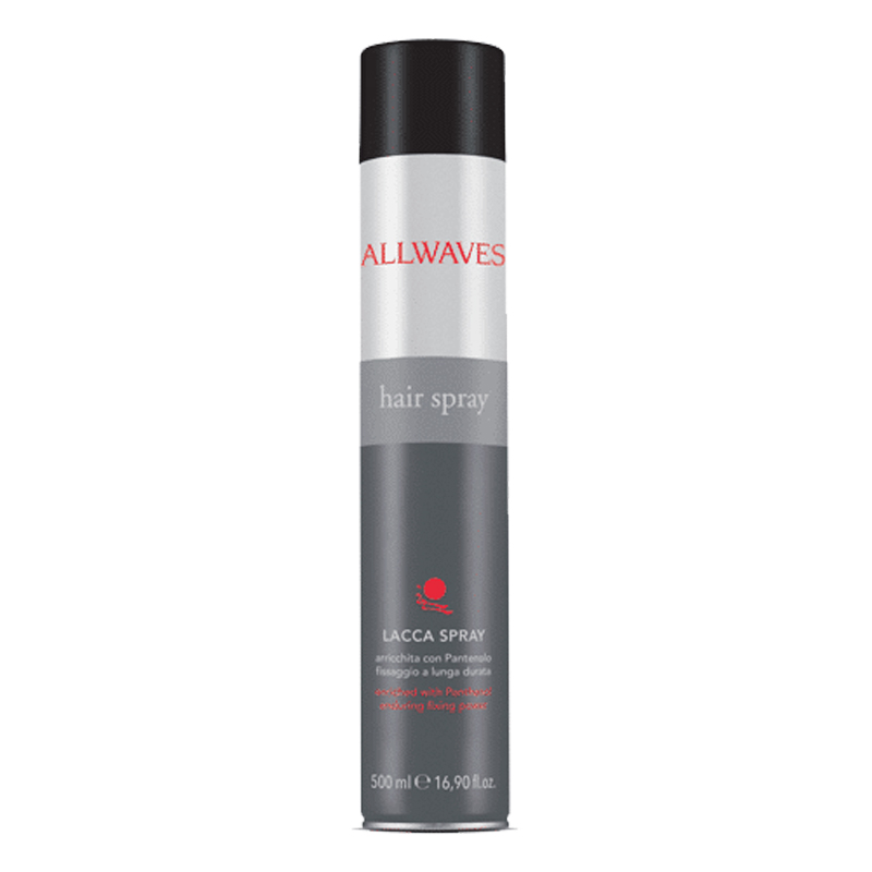 ALLWAVES HAIR SPRAY Lacca spray arricchita con pantenolo fissaggio a lunga durata, in confezione da 500ml.