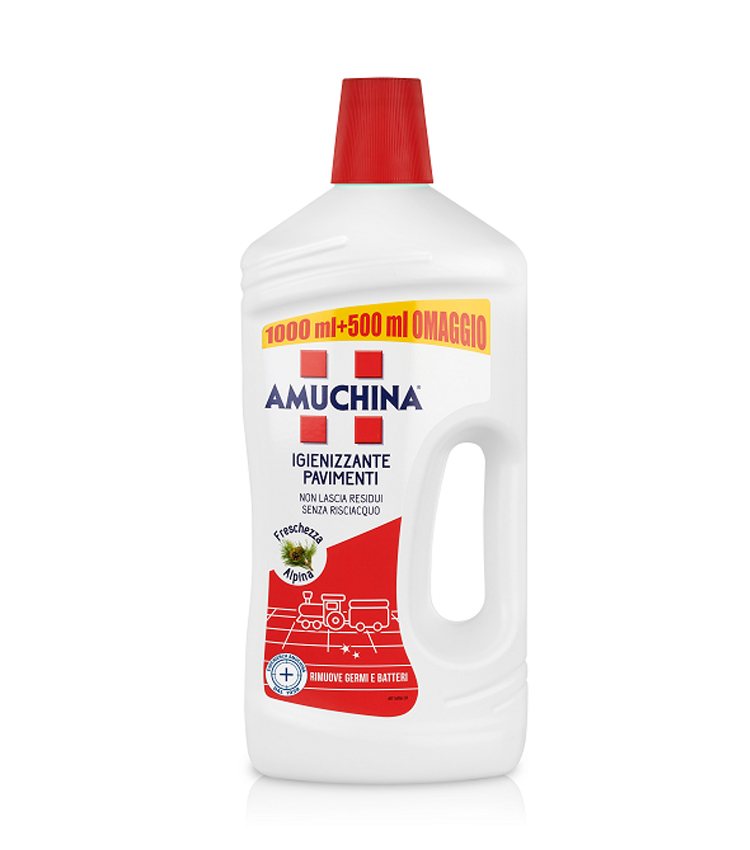 AMUCHINA IGIENIZZANTE PAVIMENTI Freschezza Alpina, per rimuovere germi e batteri, in confezione da 1500 ml.