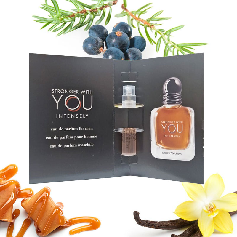 6 fialette profumo EMPORIO ARMANI STRONGER WITH YOU INTENSELY eau de parfum uomo, in confezione CAMPIONCINO spray da 1,2ml.