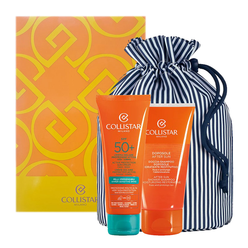 Cofanetto COLLISTAR THE ITALIAN WAY OF LIVING SUN crema solare SPF50+ viso e corpo 100ml + doccia-shampoo doposole 150ml + pochette.
