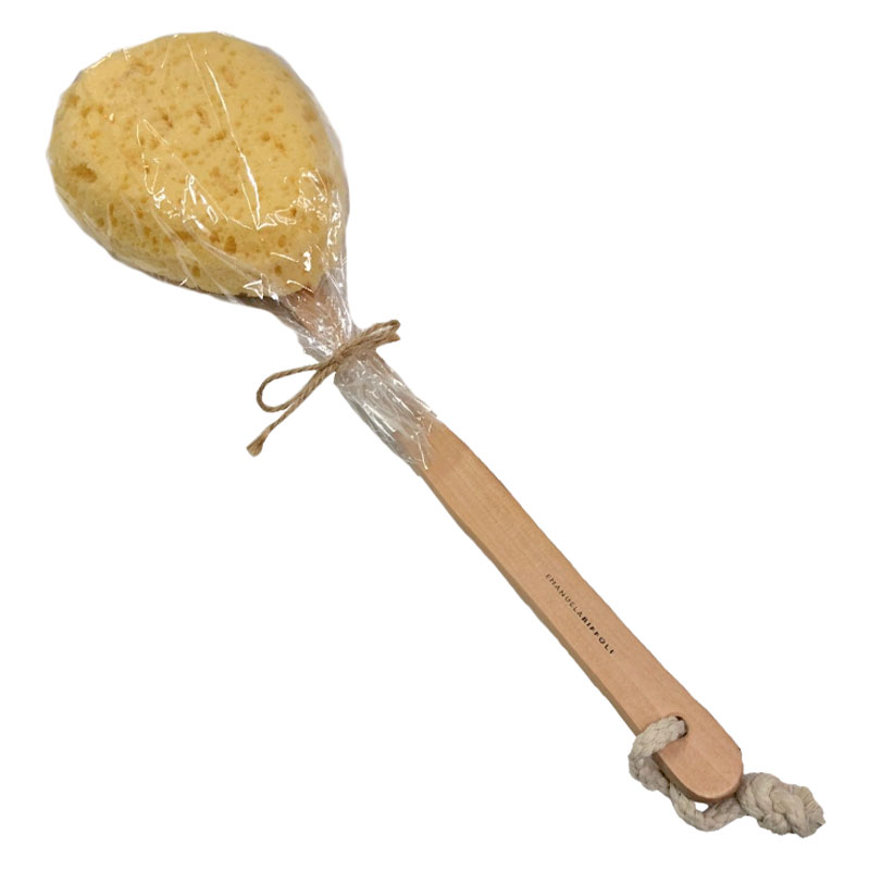 EMANUELA BIFFOLI spugna da bagno con manico in legno; spugna morbida e soffice ideale per l’igiene quotidiana. Permette di lavarsi facilmente la schiena.