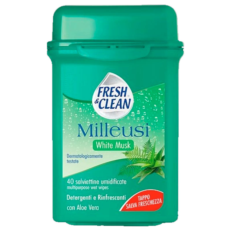 FRESH & CLEAN Milleusi SALVIETTINE detergenti e rinfrescanti WHITE MUSK, in confezione da 40 salviettine.