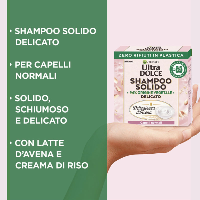 GARNIER ultra dolce SHAMPOO SOLIDO Delicato per capelli normali ECOLOGICO, saponetta da 60g.