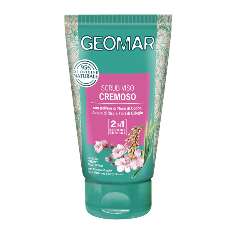 Lo Scrub Viso Cremoso di Geomar deterge efficacemente la pelle del viso, eliminando impurità, cellule morte e tracce di trucco e favorendo il rinnovamento cellulare.
