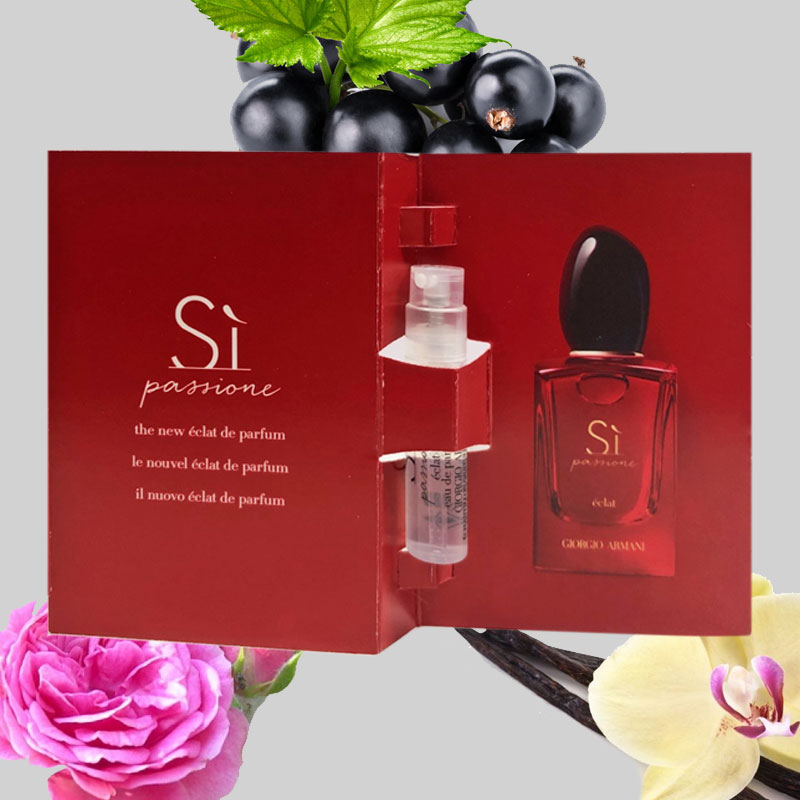 6 fialette profumo GIORGIO ARMANI SÌ PASSIONE ÉCLAT eau de parfum donna, in confezione CAMPIONCINO spray da 1,2ml.