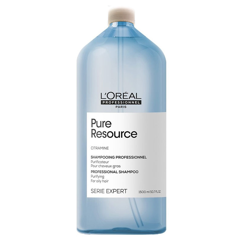L’OREAL PROFESSIONNEL Serie Expert PURE RESOURCE shampoo purificante per capelli grassi, in confezione da 1500ml + tappo tappo dosatore in omaggio.