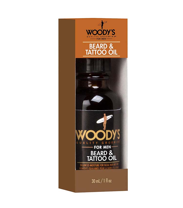 WOODY’S FOR MEN Beard & Tattoo Oil olio per barba e tatuaggi, in confezione da 30 ml.