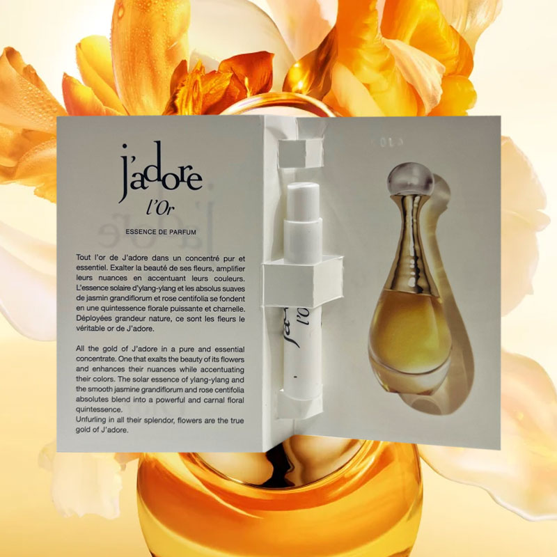 3 fialette profumo DIOR J’ADORE L’OR essence de parfum donna, in confezione da 1ml.