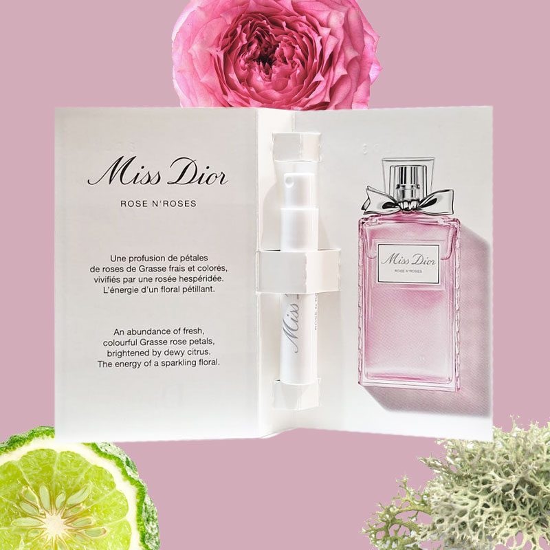 3 fialette profumo DIOR MISS DIOR ROSE N’ROSES eau de toilette donna, in confezione CAMPIONCINO spray da 1ml.