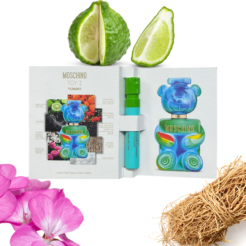 8 fialette profumo MOSCHINO TOY 2 YUMMY edp donna, in confezione CAMPIONCINO spray da 1ml.