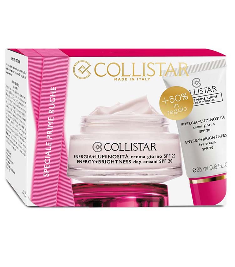 COLLISTAR Energia + Luminosità crema viso giorno SPF 20, in confezione da 50 ml. In OMAGGIO formato da 25 ml.