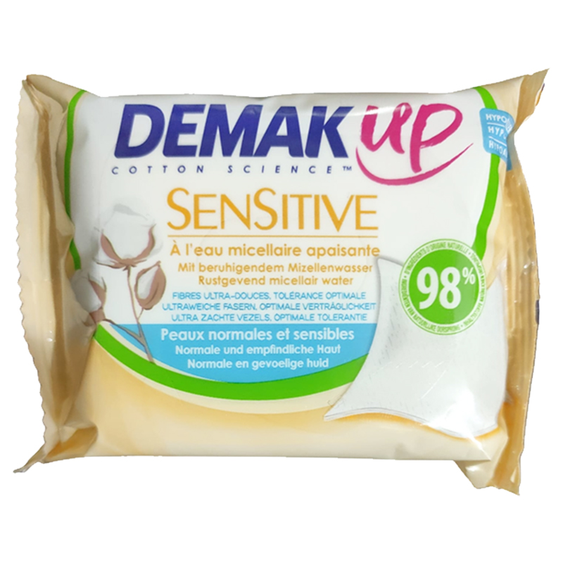 DEMAKUP SENSITIVE Salvietta struccante acqua micellare per pelli secche e sensibili, in confezione da 23 pezzi.