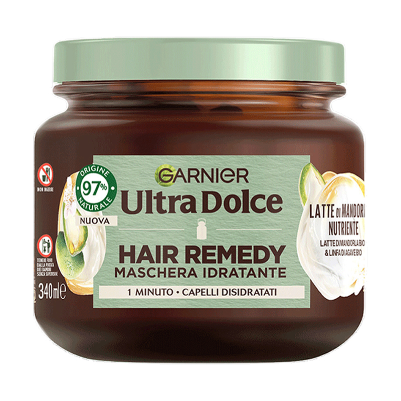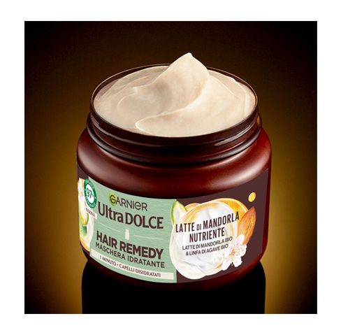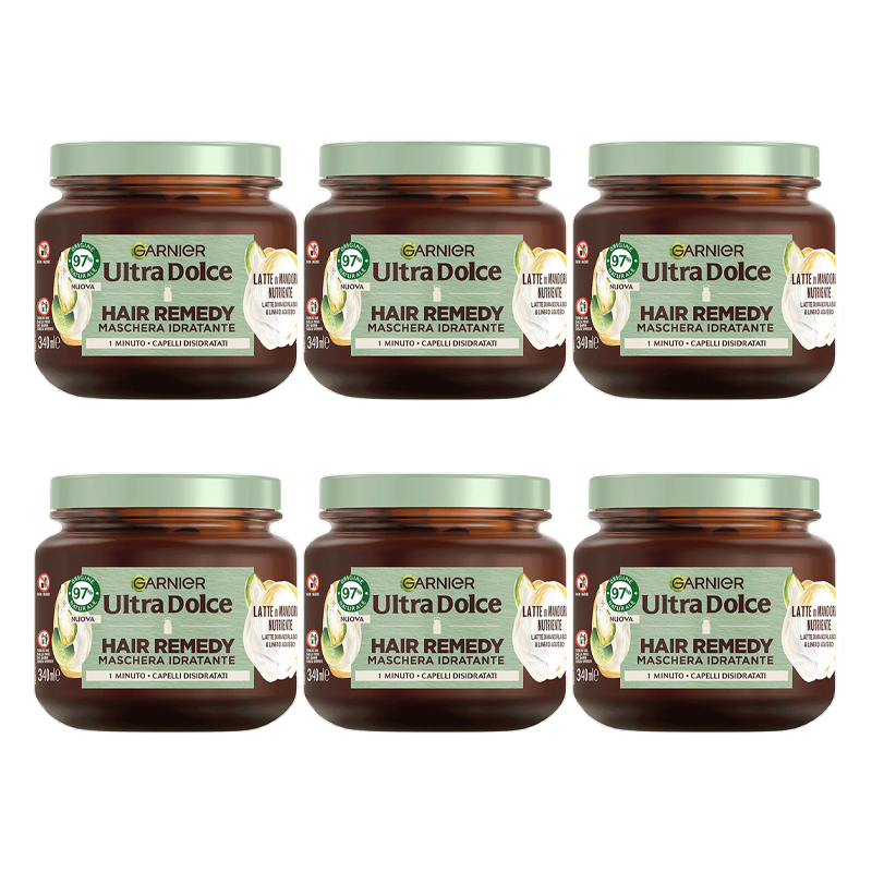 GARNIER ULTRA DOLCE Hair Remedy Maschera Idratante Latte di Mandorla per capelli disidratati, venduto in 6 confezioni vaso da 340ml ciascuno.