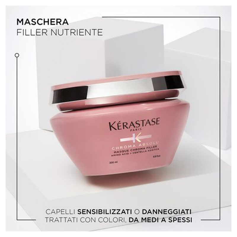 KÉRASTASE CHROMA ABSOLU Masque Chroma Filler maschera anti-porosità per capelli colorati, sensibilizzati o danneggiati, da medi a spessi, in confezione da 200ml.