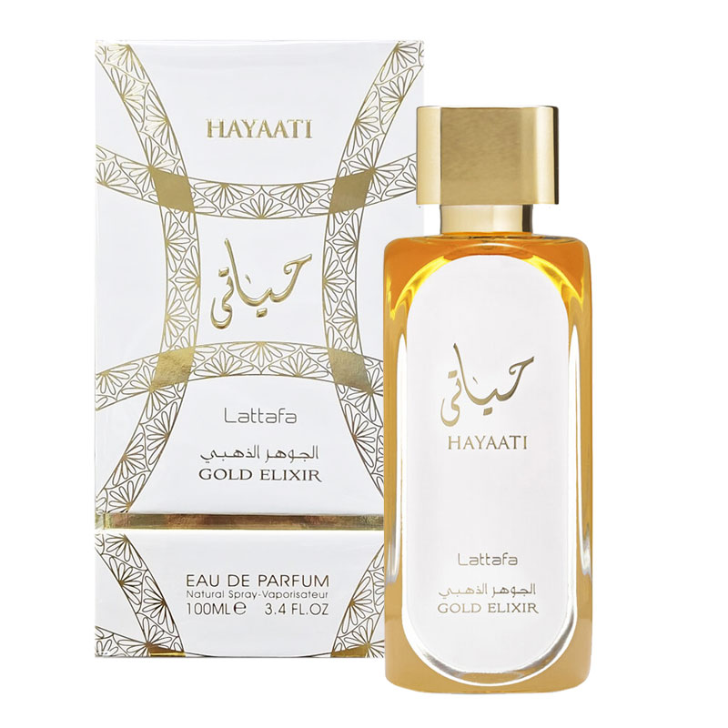 Hayaati Gold Elixir di Lattafa Perfumes è una fragranza unisex che brilla come un tesoro raro.