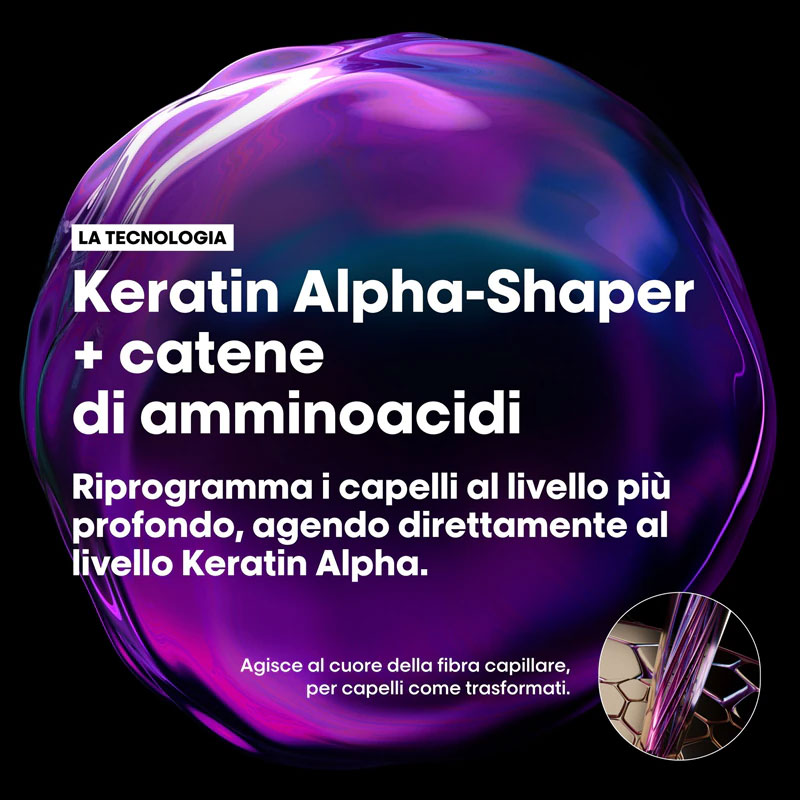 L’OREAL PROFESSIONNEL Serie Expert KERATIN ALPHA SLEEK maschera anti-crespo controllo del volume per capelli lisci, in confezione da 500ml.