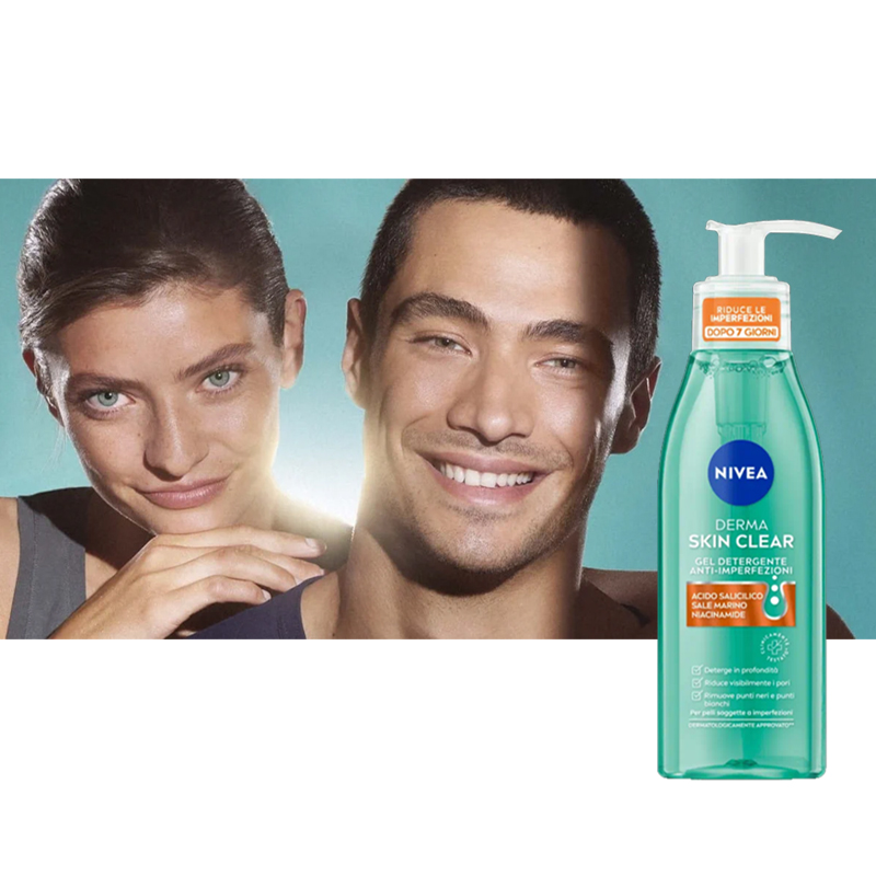 Il Gel Detergente anti-imperfezioni NIVEA Derma Skin Clear è specificamente formulato per le pelli soggette ad imperfezioni.