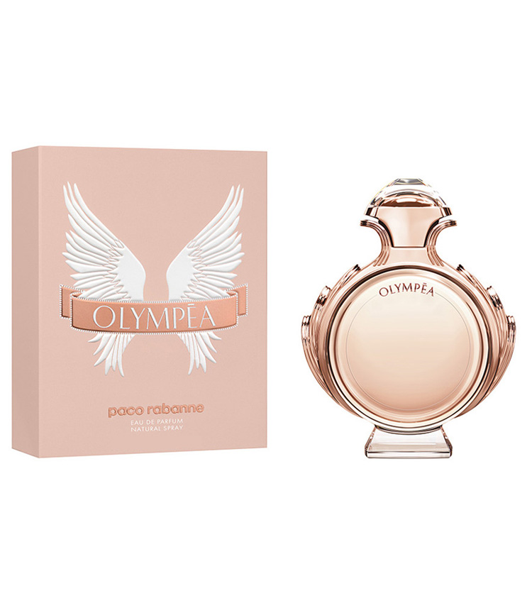 Lo spirito agonistico, la competitività e la vittoria si incontrano nel profumo Paco Rabanne Olympea, che è stato lanciato nel 2015. Anche il design del flacone ricorda la corona di alloro, da secoli simbolo di fama e vittoria. L’autore del progetto è l’artista Marc Ange di Roma.