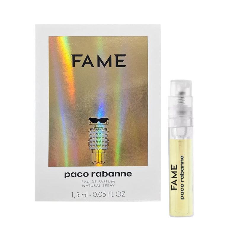 6 fialette profumo PACO RABANNE FAME eau de parfum donna, in confezione CAMPIONCINO spray da 1,5ml.