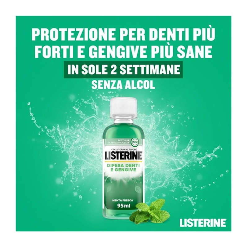 LISTERINE DIFESA DENTI E GENGIVE Collutorio travel con il contenuto di fluoruro, aiuta a proteggere i denti dalle carie. Se usato due volte al giorno in aggiunta alla pulizia orale abituale, garantisce una protezione ottimale per denti e gengive più sane.