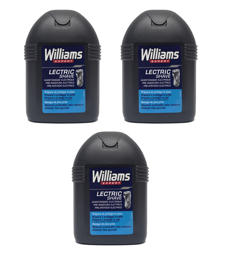 Stock 3 pezzi WILLIAMS EXPERT LECTRIC SHAVE Pre Rasatura Elettrica, in confezione da 100 ml.